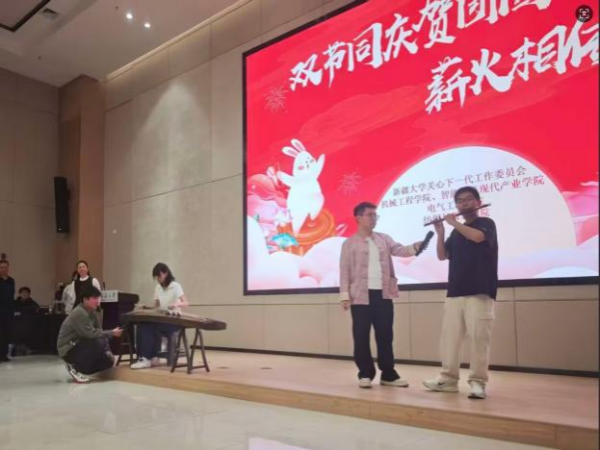 各学院师生纷纷登台献艺:优雅的古筝与笛子演奏令人陶醉,展现传统音乐的魅力;活力四射的团体舞蹈彰显青春风采;同学们的双人歌唱配合默契,歌声动人;老师的独唱表演更是赢得满堂喝彩。互动环节中,师生共同参与薪火相传”、“灯谜竞猜”“等传统游戏,现场欢声笑语不断,尤其是薪火相传互动游戏,通过老教师与青年学子结对完成挑战,象征育人精神代代相传。